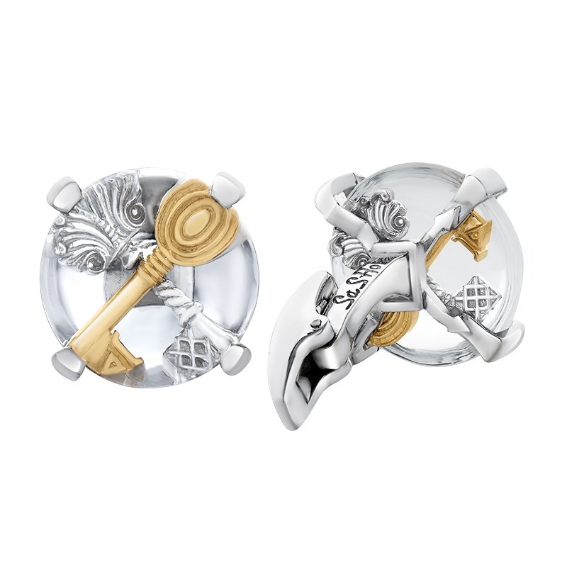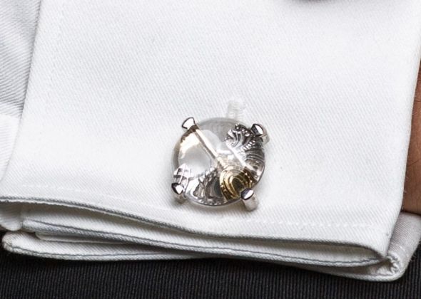 Individually cut quartz. Symbols of masculine and feminine. The tops used graphic elements with a 1-dollar bill. At the base of the cufflinks - quotes charts.